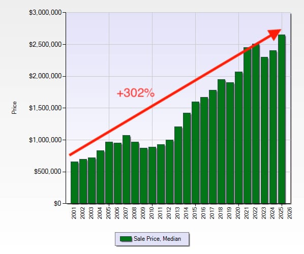 This chart looks like a reverse of the listings chart just above. But it's hard to find a better return on investment than the 302% that the local real estate market delivered. That's why an increasing number of residents who do move into a new home (whether upsizing here, or leaving the area) are simply not selling the exit property, but rather keeping it for rental income or to accommodate their kids or other family members. The recent explosion of wealth in the tech sector is certainly making that option more viable for many people.
