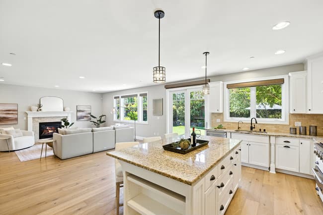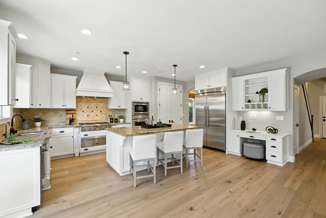 - Kitchen/Family Room Combo: If you've seen any of these newly constructed homes, you'll notice that the new design trend is to combine the aforementioned large kitchen with an equally large family room, creating a “great room” feel. The kitchen has everything to create the experience, and the family room, with its huge flat screen TV and incredible sound system, is where everyone enjoys the experience. The pictures below are from one of my recent listings, and they are a great example of what I'm referring to.