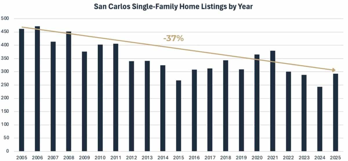 San Carlos Listings Have Declined for 20 Years. Here’s Why They’re Not Coming Back.